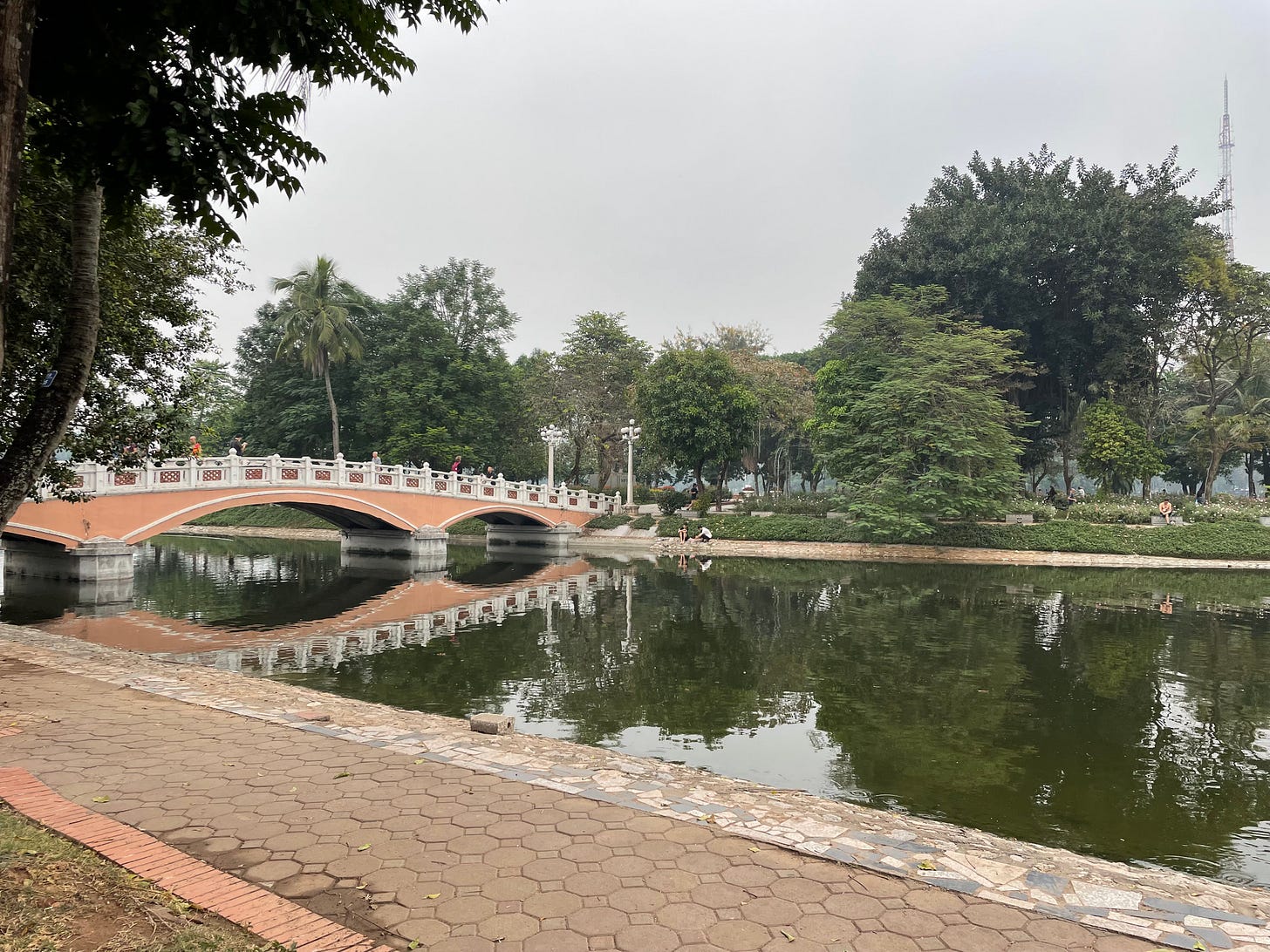 THỐNG NHẤT PARK — I’m moving up a stream of people flailing their arms, rubbing their faces therapeutically, staring blankly ahead – men with tank tops rolled up into crop tops, women with visors tilted over their entire face.